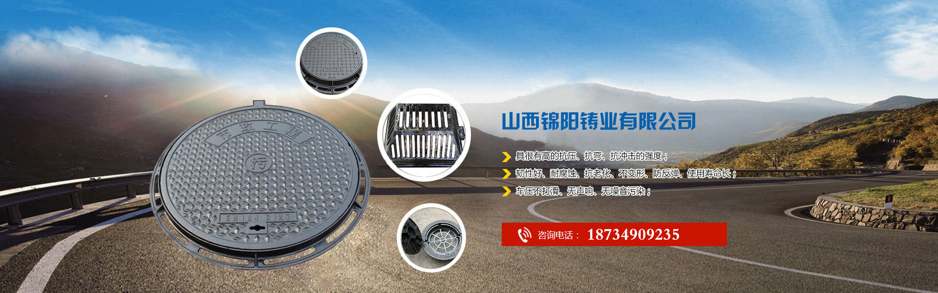 山西錦陽鑄業地處晉、陜、豫交界處臨汾市。臨汾市有豐富的礦產資源和便利的交通,本地有著悠久的鑄造歷史。 本公司專業生產圓井蓋、方形升蓋、套篦、溝蓋板、及防沉降井蓋,目前也在開發(fā)智能井蓋的應用。本公司的蓋尺寸和模具全,如有定制產品我公司可快 速出圖紙定做模具試樣。